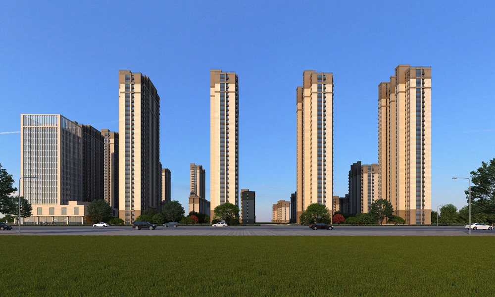 該項目占地麵積約12.2萬平方米,總建築麵積約49.2萬平方米,綠化率高達35%,總戶數2760戶,總共有26棟樓,一棟商業綜合體;其中14棟9層住宅,2棟18層住宅,13棟34層住宅。