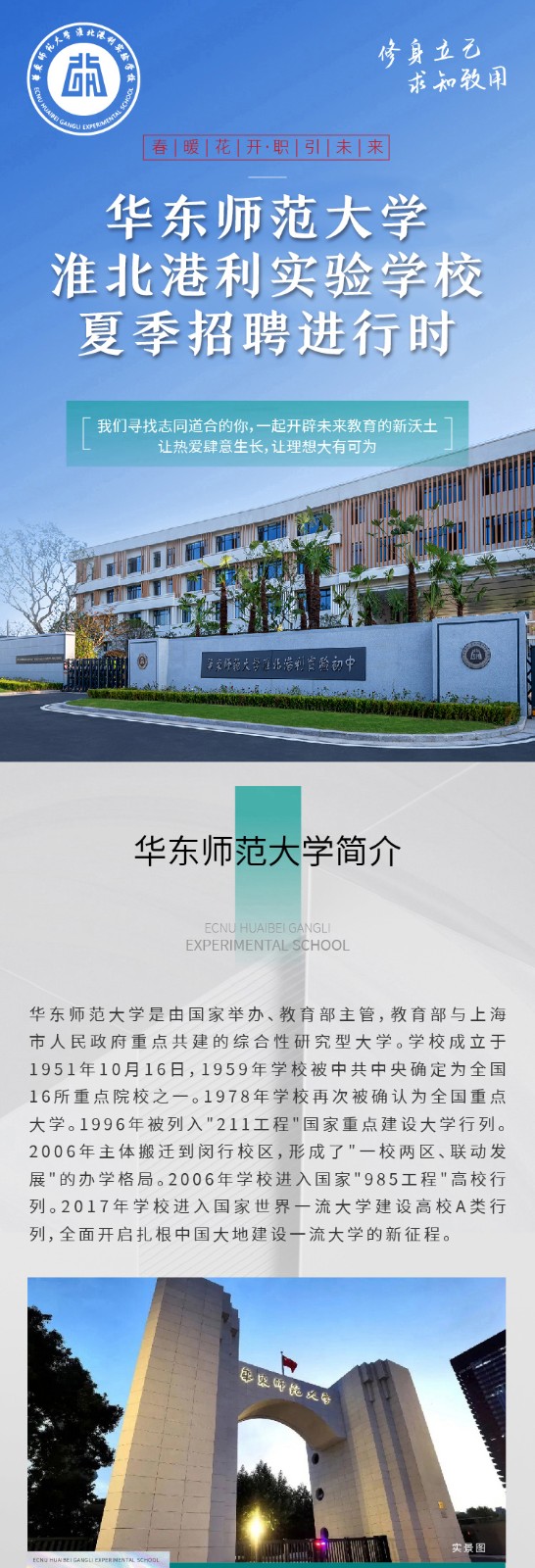 2022年華東師範大學淮北港利實驗學校夏季招聘進行時