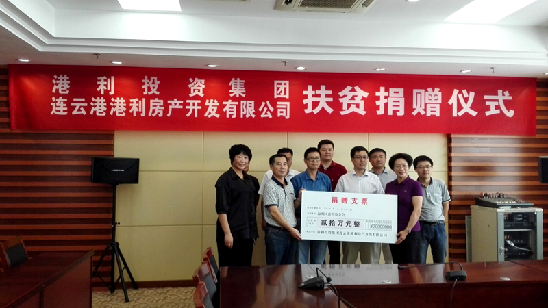 2016年8月31日下午3點,連雲港港利房產開發有限公司扶貧捐贈儀式在海州區區政府舉行。市海州區區委副書記張誌峰、市慈善總會會長顏景華、海州區政府黨組成員俞向軍、連雲港港利房產開發有限公司總經理王繼明等同誌出席了此次活動。
