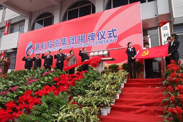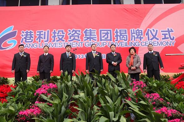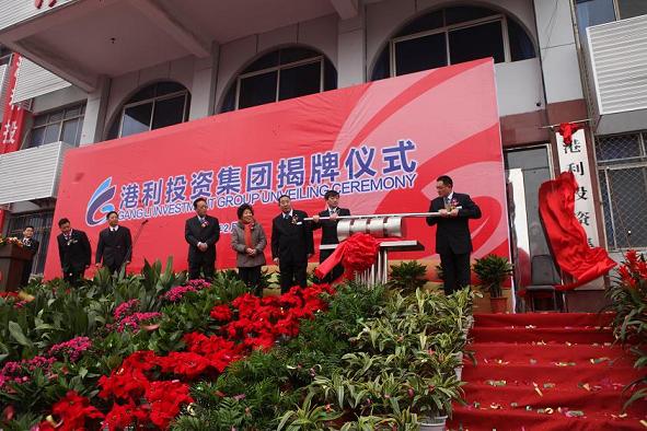 集團黨委書記、董事長彭萬富,黨委副書記、副董事長、副總經理唐軍共同為港利投資集團牌匾揭幕,宣告港利投資集團正式成立。