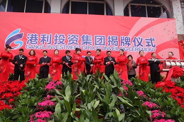 儀式上,集團黨委書記、董事長彭萬富,總顧問王廷柱,黨委副書記、副董事長、副總經理唐軍,副董事長劉淑玉,董事於緒龍,總經理助理汪新友、張豔輝共同為港利投資集團成立剪彩。