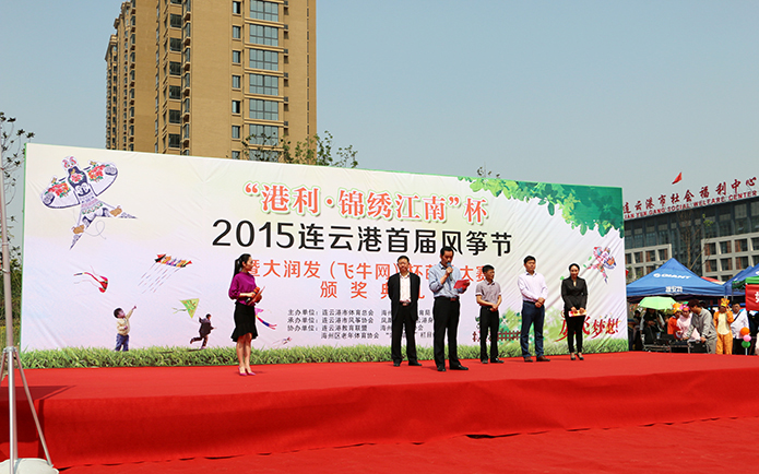 市體育局、文化局、風箏協會、教育培訓機構等眾多單位參加了本次活動,同時風箏節還吸引了來自海州實驗小學、連雲港中專校、贛榆黃海路小學、學思教育、愛心教育、金木教育、瀚知教育等26支代表隊的到來,連雲港港利房地產開發有限公司營銷總監陳凱先生上台致辭,連雲港市體育局書記夏正躍宣布活動正式開始。