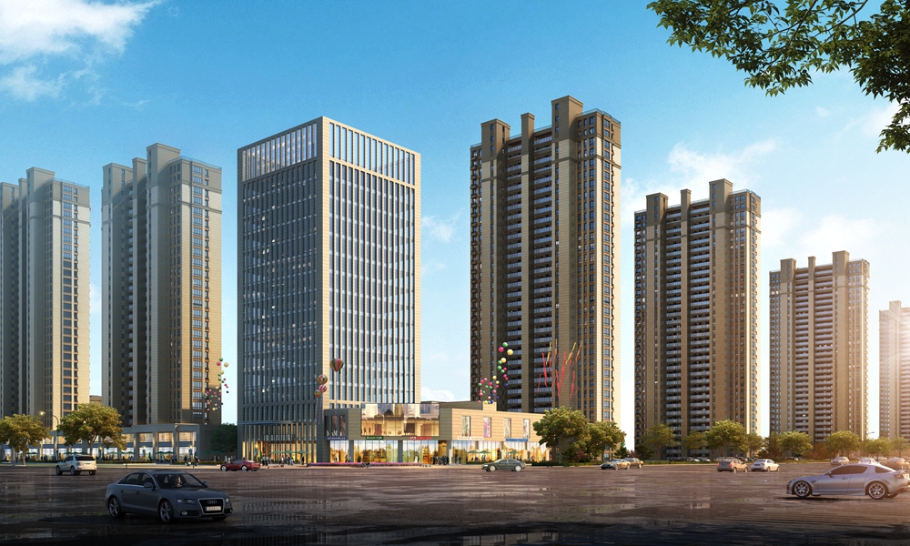 該項目占地麵積約12.2萬平方米,總建築麵積約49.2萬平方米,綠化率高達35%,總戶數2760戶,總共有26棟樓,一棟商業綜合體;其中14棟9層住宅,2棟18層住宅,13棟34層住宅。