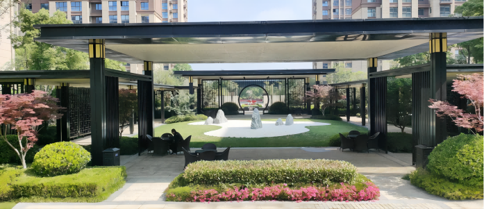 江蘇東海港利•錦繡江南小區景觀設計取思於江南自然山水美學和本土水晶文化,利用曲線與弧麵設計構造建築的柔軟視覺觀感和靈動流體立麵,提升居住空間活力、增加園林景觀趣味。清微淡遠的中式古意建築搭配別有韻致的園林景觀紋理,靈動朦朧的煙雨江南之景凸顯清俊雅致的東方格調,動靜相襯、景韻相宜,勾勒出古樸閑適、意蘊綿長的雲水之境、回廊之境、清風之境、綠茵之境和童趣之境!