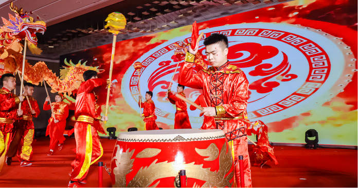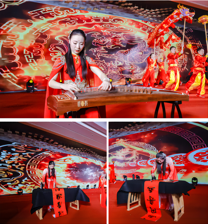 安徽淮北華曜港利實驗學校的老師們帶來開場表演《龍騰盛世》,以舞蹈、書法、武術等才藝,配以古箏、鼓、笛子、二胡樂器伴奏,呈現了一場精彩絕倫的二龍戲珠,祝願集團50周年吉祥、繁榮、蓬勃發展。