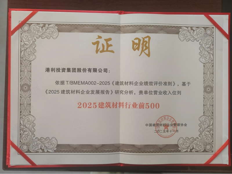 2025 年11月26日至28日由中國建築材料企業管理協會主辦的“2025 建材企業發展大會”在山西省太原市隆重召開。作為國內建材領域極具權威性與影響力的標杆活動,本次大會由中國建築材料企業管理協會主辦,以“識大局、破困局、謀新局”為核心議題,彙聚了行業頂尖專家、知名企業領軍人物。會上,備受關注的“中國建材企業500強”榜單正式揭曉,港利投資集團憑借深厚的產業積澱、卓越的創新能力與良好的市場口碑,連續六年榮登榜單,再度彰顯其在建材行業的堅實地位與強勁實力。